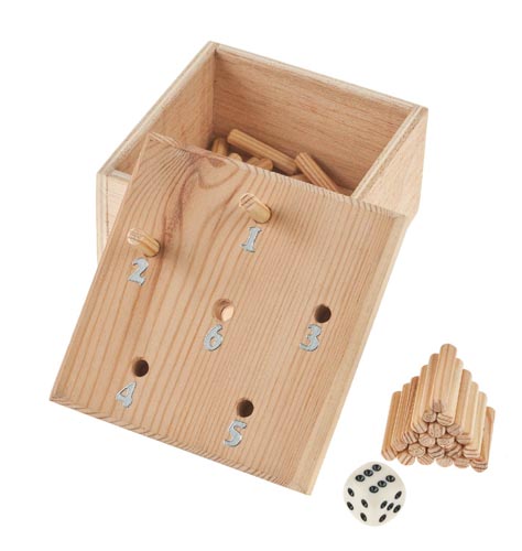 A játékot 2 - 6 személy játszhatja. A játék gyöztese lesz az a játékos, aki elsöként dobta be a rúdacskáit a kockába. A játék folyamán körbe haladva dobnak a játékosok egymás után és csak hatosnál szabad a rúdacskát a kockába dobni. A játékot érdekessé teszi, hogy a gyerekeknek maguknak kell elözöleg a játékot falapokból, egy pontos összeállítási útmutató alapján összeépíteni. Méretek: (H x Sz x M) 100 x 100 x 60 mm