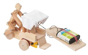Könnyen összeállítható hajtómotoros modell, kábeles távirányítóval. A kapcsoló hatására elöre vagy hátra képes haladni. A napernyöt egyszerü papír és metál hajlítómunkákkal tudjuk megformálni. 185 x 90 x 140 mm. A csomagban pontos, részletes összeállítási útmutató található.