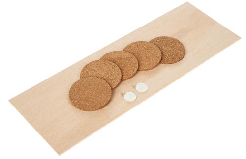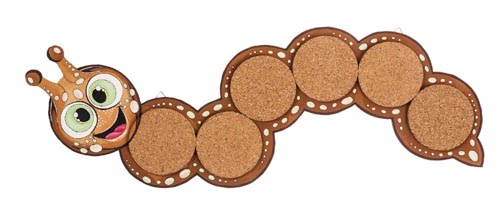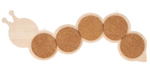 Ideális technikai készlet a lombfürészelés gyakorlásához. A sablonokról rajzoljuk át a furnérlemezekre és fürészeljük körbe a mintákat. Fessük meg a kiválasztott színekkel a részeket, majd ragasszuk föl a parafalapokat és rögzítsük a képakasztókat. A kukac kb. 60 cm hosszú, a parafa lapok ø 85 mm