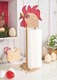 A kakasfejű konyhatörlő tartón egy praktikus szakítássegítő fogazat könnyíti meg a szabvány méretű konyhatörlők eltávolítását a tekercsről. A sablonok (fej, taréj, láb, csőr) 1:1 méretarányban megtalálhatók a csomagban. A kész alkotás kb. 400 mm magas.