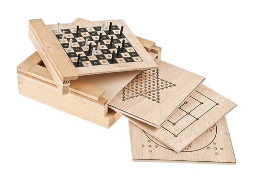 4 különbözö játék. A leírás alapján saját kezüleg elkészített és cserélhetö játéklapok után saját magunk készítjük el a játékfigurákat is. A játék után a figurákat és az elörenyomtatott játéklapokat a játékdobozban tároljuk. A játéklapok mérete 100 x 100 x 30 mm. Német nyelven