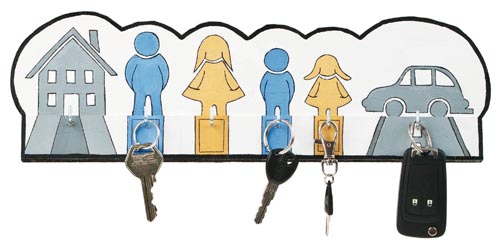 Egyszerü lombfürészmunka. Az elkészült kulcstartót a falon kell rögzíteni. A csomag a 6 db kulcstartó szöget és 1:1 arányú sablont is tartalmaz. magasság 360 mm