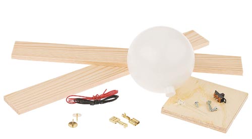 80 x 80 x 100 mm, gömb ø70 mm. Részletes leírás a sikeres összeépítéshez, . Az elemet (4,5V) a csomag nem tartalmazza.