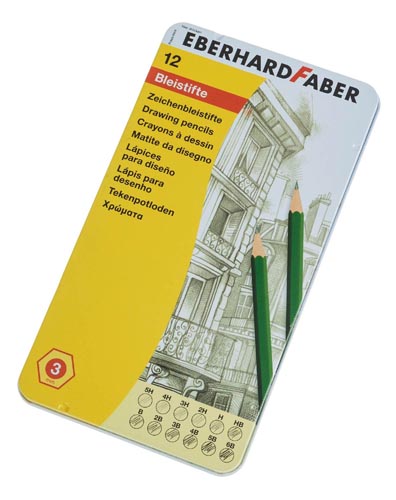 Törésálló betét, könnyen hegyezhető és radírozható, fém dobozban, 12 keménység