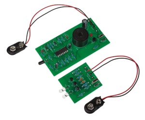 Egy szignáladó és egy szignálvevő, melyek akár 4 m távolságról is érzékelik egymást. Ha megszakad a szignál útja, akkor megszólal egy jelzőhang. 10 éves kkortól ajánlott. A működéshez szükséges 9V elemet külön kell megrendelni. A szignálvevő kb. 95 x 50 x 20 mm, szignáladó kb. 50 x 40 x 10 mm. Leírás német nyelven.