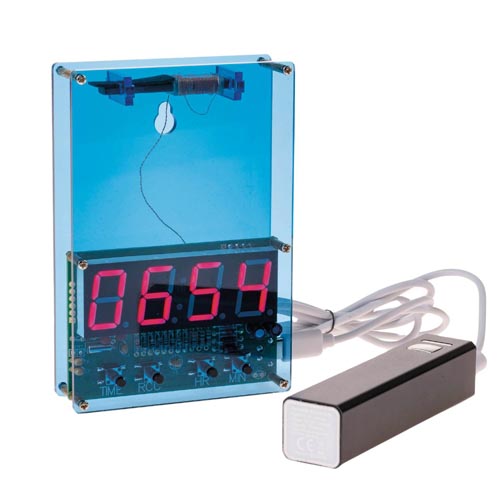 Sikeres beállítás után ez a rádióvezérlésű óra a beépített DCF modulnak köszönhetően magától beállítja magát, és 4 nagy, 7 szegmenses kijelzőn mutatja a pontos időt. A kék akrilüveg kiváló minőségű megjelenést kölcsönöz ennek a készletnek. Tartalék elemtartó CR2023 elemekhez. Manuálisan is állítható. Tápellátás szabványos mobiltelefon-töltőállomáson keresztül USB-A-val. Szükséges munka: forrasztás és szerelés.
