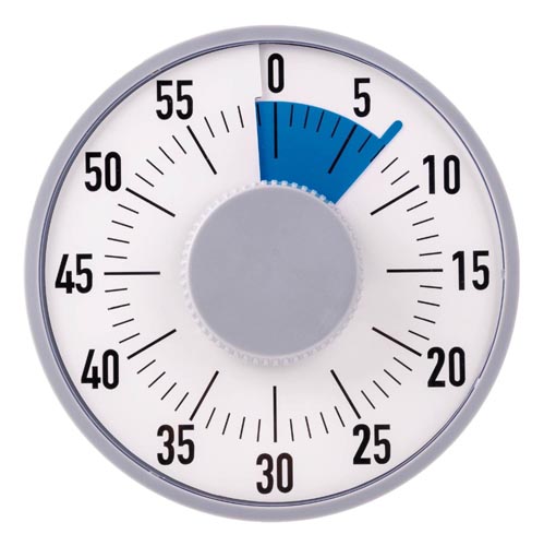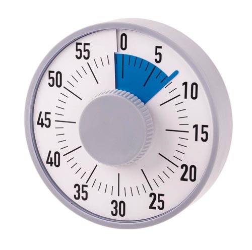 A forgó koronggal a kívánt időtartamot másodperc pontossággal be kell állítani. Közben szalad a visszasza´mlálás, mint egy tojásfőző óránál. A színes felületen lehet látni, hogy mennyi idő szaladt már le. A 0 pontra érve cseng. Borítás műanyag, lábakkal, és akasztó lehetőséggel, kb. ø 160 x 35 mm, 1 db