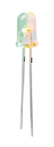 ø 5 mm, átlátszó búra, üzemfeszültség 3,0 - 3,3 V, 20 mA, zöld 20.000-30.000 mcd, sárga 9.000-13.000