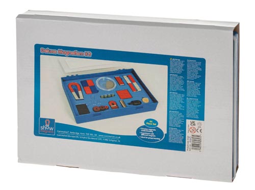 Tartozékok: mágnestábla, patkómágnes és gombmágnes, kerek és négyzet alakú Alcomax mágnesrudak, ferrit mágnes tömbök ésd gyűrűk, acél-patkómágnes, vaspor műanyag dobozban, egy két műanyagbevonatos vasmágnes, színes mágneses négyzetalakú gumilap. chromacél rúdak és fém korongok.Leírás német nyelven.