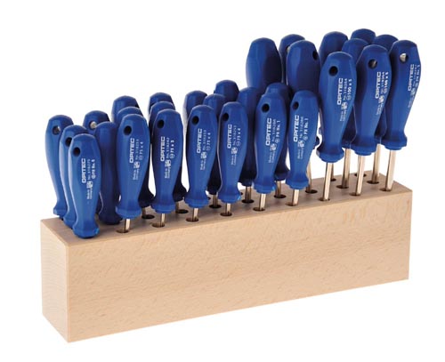 Szerszámacél, chrom - vanadium. 5 - 5 db csillag csavarhúzó PH (0, 1, 2), csavarhúzó (75 x 3, 75 x 4, 100 x 5 mm) + 1 db szerszám tároló