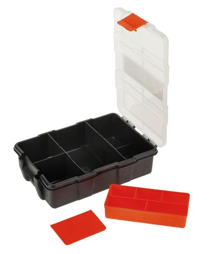 Belül 4 fakk kb. 70 x 65 x 50 mm és 2 fakk kb.70 x 65 x 25 mm , zárható tetővel, kivehetők.