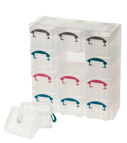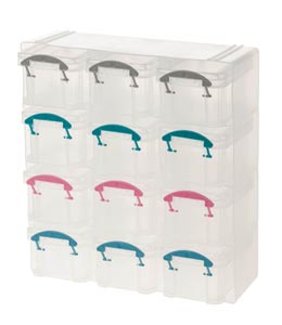 Műanyag fakkos tároló kb.210 x 85 x 220 mm - 12 mini fiókkal