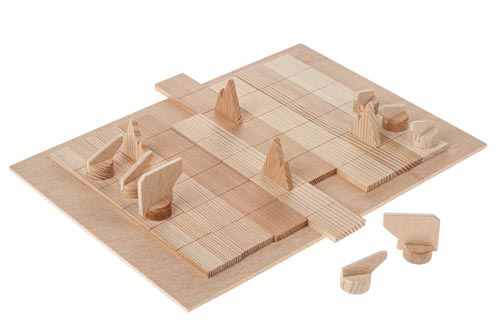 Egy izgalmas társas 2 játékosnak. A játék célja, hogy a 3 fóka közül az egyik átjusson a másik oldalra. Az ellenfél feladata ezt a jegesmedvékkel megakadályozni - vagy megfogják a fókát vagy elzárják az útját a jéghegyekkel. Az elkészítéshez egyszerű lombfűrész munka szükséges - jelölés, fűrészelés, vágás, csiszolás, festés és összeépítés. Pontos leírás német nyelven.