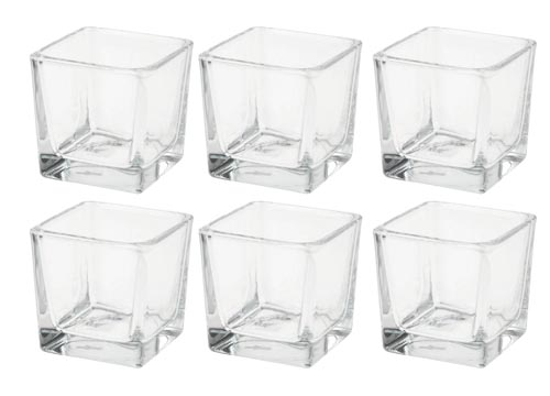 Üvegkocka mécsestartó, kb. 70 x 70 x 70 mm átlátszó, 6 db
