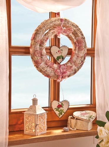 A szalmakoszorú alapként szolgálhat egy fenyögallyal körbe kötött adventi koszorúhoz, de magában is díszít- hetjük dekorációs kellékekkel, az alkalomhoz illöen.