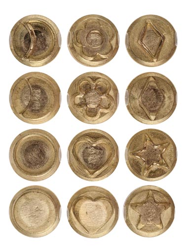 virág, rombusz, holdak, körök, csillagok. A csomagban egy adapter is található, mely az 540.025 vagy 540.391 cikkszámú szerszámhoz alkalmazható.