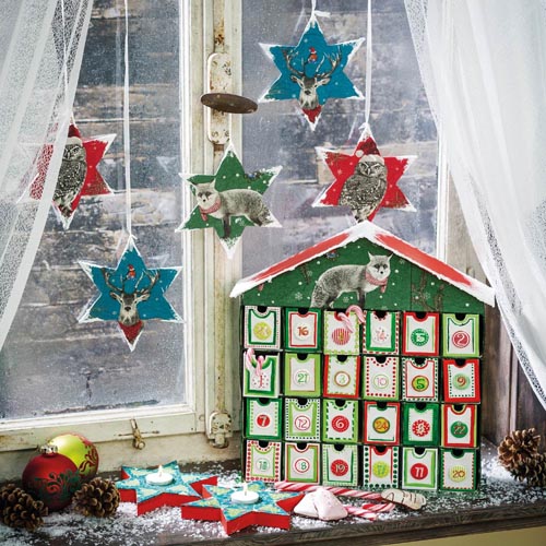 Facsipeszes adventi kalendárium, 24 részes, kb.60 x 10 x 45 mm, natúr/ színes