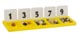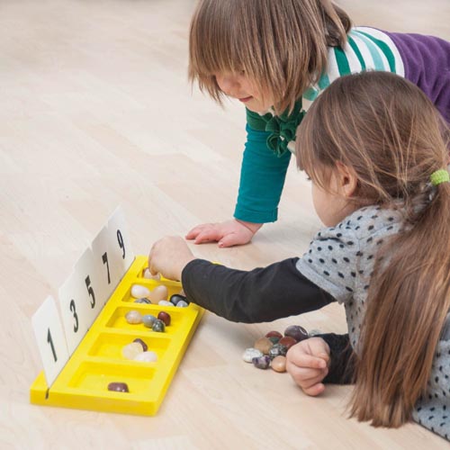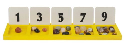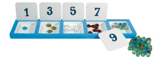 A számoló lap a számok megismerésének segédeszköze. A kártyán feltüntetett számnak megfelelő mennyiségű pl.golyót, kell a méllyedésbe helyezni. Méretek: 120 x 500 x 19 mm vastag, 5 méllyedés mérete 80 x 90 x 15 mm, méllyített kártyalap tartó csík 500 x 4 x 13 mm, natúr