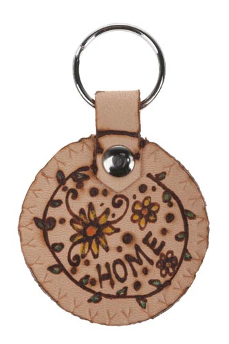 Bőr kulcstartó, korong, 52 x 68 mm, 1 db