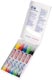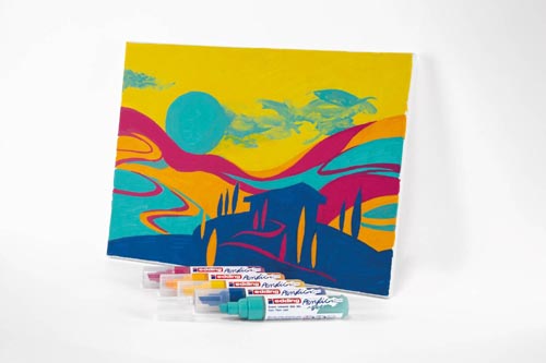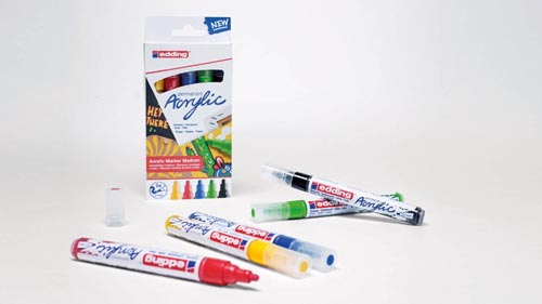 A vízes bázisú acrylfesték magasan pigmentált, fényálló permanent és szagtalan . Világos és sötét felületekre egyaránt alkalmazható, mint pl. papír és feszített vászon. A gömbölyített hegy kb. 2 - 3 mm vonalhúzásra alkalmas. 5 db 5100 edding fekete, piros, kék, zöld és sárgászöld színekben.