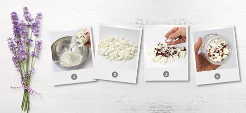 Kímélő tisztítás a strapált bőrre. A por alakú keveréket a Hair&Body bázisgellel lehet keverni, majd a megszáradás után össze lehet tördelni. Szappanszínezővel, illatosítóval és ápoló kiegészítőkkel lehet esetleg keverni, amiket a csomag nem tartalmaz. Leírás német nyelven.