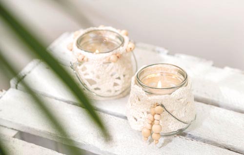 Üveg mécsestartó, akasztó fogantyúval, kb. ø 65 x 75 mm átlátszó, 12 db