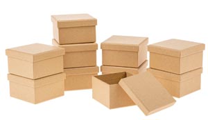 Négyzet alakú kartondobozok, kb 75 x 75 x 45 mm, barna, 10 db
