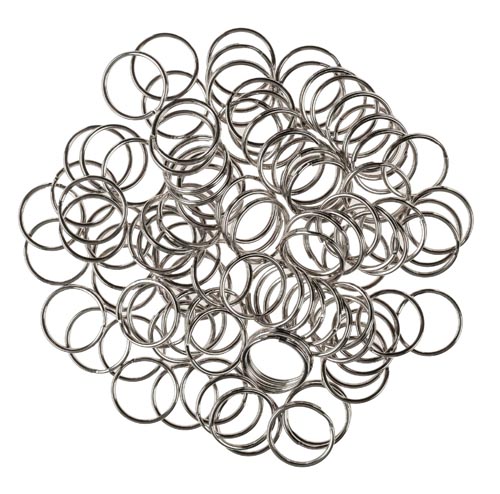 Kulcskarika, ezüstszínű, 30 db, kb.ø 15 mm, 20 mm és 30 mm méretben