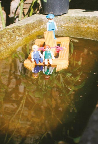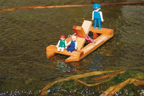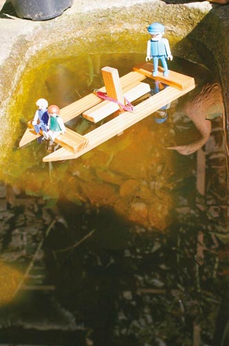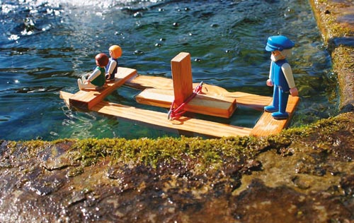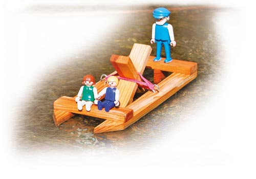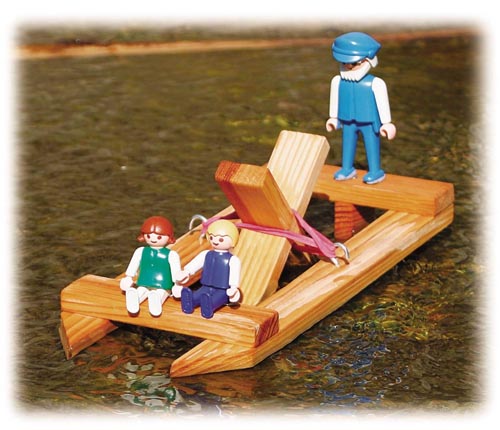 A hajót a lapátra tekert gumi hajtja. 250 x 100 x 100 mm