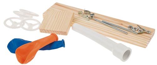 Több éves tapasztalat mutatja, hogy ez a modell az egyik legkedveltebb barkács csomag az iskolák körében. A meghajtóerő prezentálásához kíváló segédeszköz. hossza kb. 200 x 75 x 115 mm A csomag a lufit és egy fújócsövet is tartalmazza.
