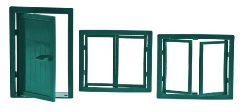 2 ablak 50 x 60 x 15 mm, 1 ajtó 48 x 75 x 13 mm, műanyag