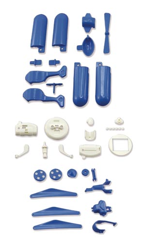 Lehetséges modellek: szélmalom, vízirepülő, autó, robot, helikopter, repülő. Műanyag építőelemek kék és fehér színben. Pontos leírás .