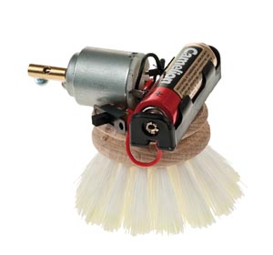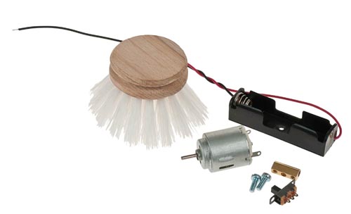A csúsztatós kapcsoló zárja az egyszerű áramkört, a kefe elkezd forogni. Az üzemeléshez szükséges 1 db 1,5V elemet külön kell megrendelni.