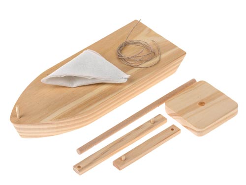 Előkészített farészekből, már csak enyvezni kell és egy ollzó szükséges. Vitorla anyag és zsinór acsomagban található. Kb. 215 x 55 x 100, 1 db