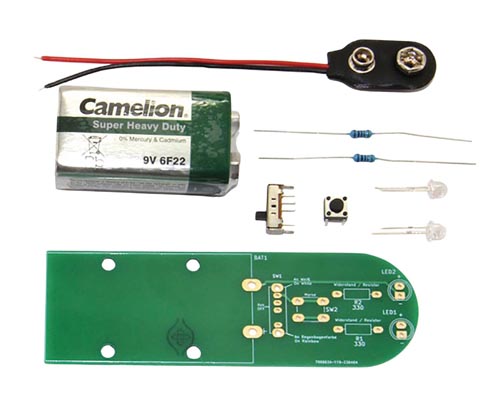Kifejezetten kezdő forrasztó munkához tervezett zseblámpás forrasztótábla. Extra nagy forrasztóérintkezőkkel, amelyek megkönnyítik az első lépések megtételét a táblaforrasztás világában. Az utasítások szerint minden alkatrészt egymás után forrasztanak. Minden egyes lépés részletesen, sok szöveg nélkül lesz bemutatva, így különösen a fiatalabb diákok gond nélkül tanulhatnak forrasztást. Az összeszerelés befejezése után egy menő, morze-kóddal ellátott zseblámpa készült. 9V elemmel Méretek: kb. 57 x 40 x 10 mm.