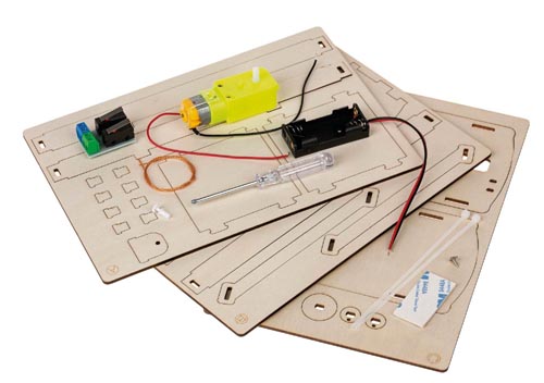 Egy hajtómotoros teherlift részletes modellje. A precíz lézertechnológiával vágott rétegelt lemezrészek tökéletes illeszkedést garantálnak és könnyen kivághatók. Nincs szükség átdolgozásra. A kapcsolókkal és kábelbilincsekkel felszerelt előreforrasztott áramköri lap, lehetővé teszi az elektronikus alkatrészek egyszerű összeszerelését. A csomagban található csavarhúzó és ragasztóbetétek. Nincs szükség további szerszámokra. 2x 1,5 V (AAA) elem nem a csomag tartozéka. Szükséges munkafolyamat: összeszerelés. Méretek: kb. 80 x 125 x 230 mm, 1 db