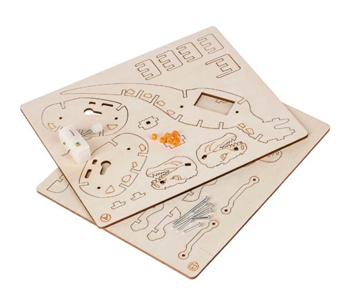 Lézerrel vágott fa alkatrészekből készült mozgatható modell tekercsmotorral. beleértve a szerelési tartozékokat is. Méretek: kb 150 x 60 x 120 mm, 34 db