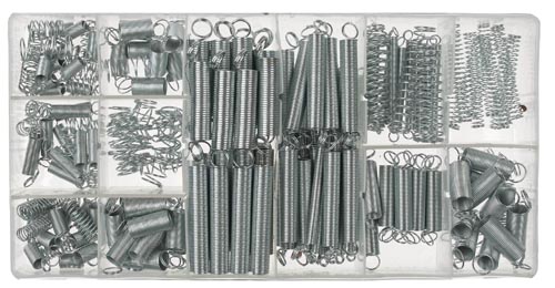 Különböző vastag és hosszú húzó és nyomó rugók.