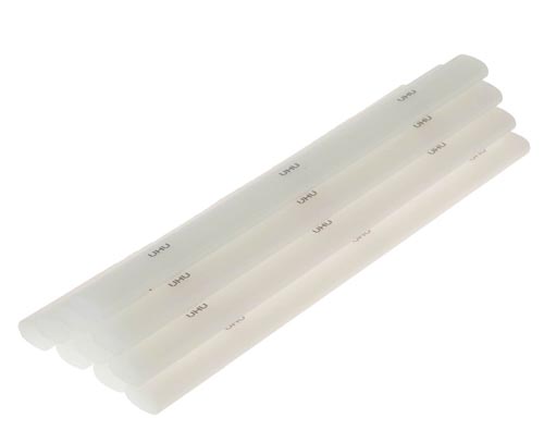 Ovális forma, az UHU LT110 (300487) ragasztópisztolyhoz alkalmazható. Majdnem minden anyaghoz használható, mint pl. fa, papír, karton, fém, bőr, textil, parafa, üveg és műanyag, sőt még hungarocellhez is. Ideális barkács szerszám. Tejes fehérre szárad.
