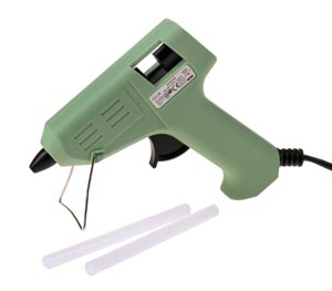 Kis, alacsony hőmérsékletű ragasztópisztoly (kb. 140 mm hosszú) precíziós fúvókával. 2 db ragasztó betéttel kb. ø 7/8 x 100 mm. Műszaki adatok: fűtési idő: § 7-10 perc, olvadáspont: § 85 °C, teljesítmény: § 10-60 W