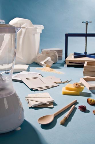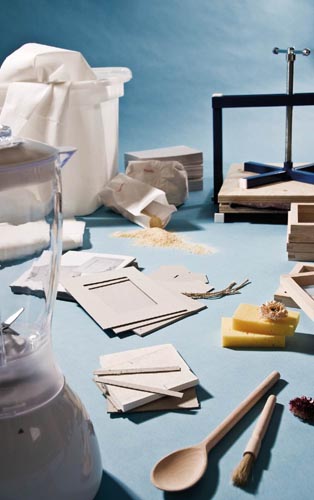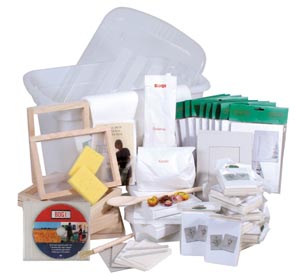 Tartozékok: 4 db papírszűrő, 1 mérő edény, 20 db filcalátét, 20 db notícblokk és boríték, 20 db képkeret (9 x 13 cm), 3 kg 1/2 cellulóze lap, 250 g szerves zselatin, 1000 g kaolin, sűrítő szer, szárított virág, 2 db szivacs, 1 db ecset, 1 db keverő kanál, 1 DVD .