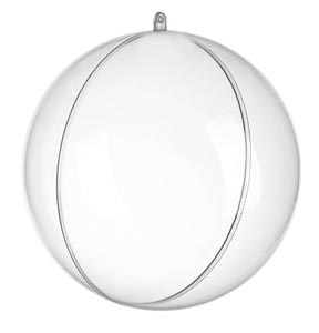 Két összeilleszthetö részböl álló átlátszó acryl golyó, akasztóval. Az acryl dekorációs formák ideálisan festhetök, márványozhatók, alkalmasak szalvéta technikához és a Window Colour festéshez.