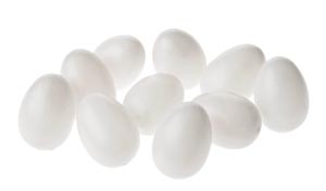 Műanyag tojás, 10 db, fehér, 60 x 45 mm