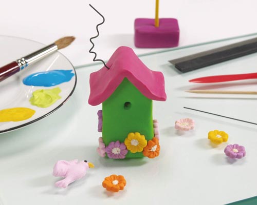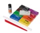 9 x 25 g (fehér, fekete, barna, zöld, kék, viola, piros, narancs, sárga), 10 ml fényes lakk, 1 db modellező rúd, 1 db alátétlap, leírás