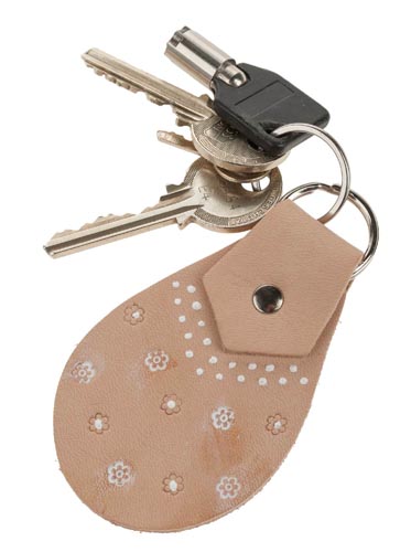 Bőr kulcstartó, korong, 52 x 68 mm, 1 db
