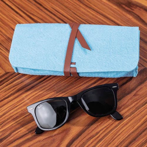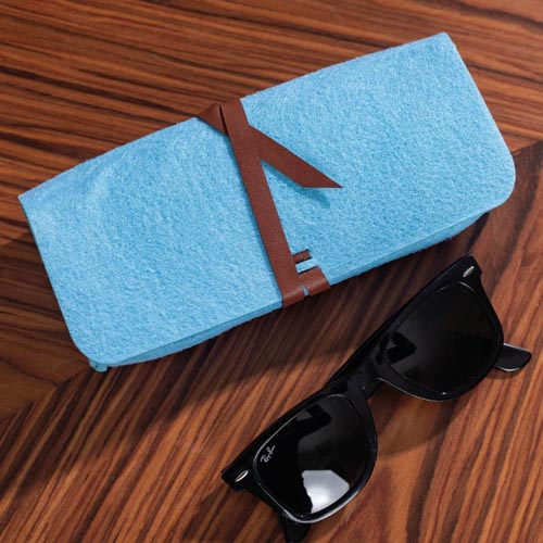 Filc szemüvegtartó, kb.200 x 45 x 75 mm, világoskék, 1 db
