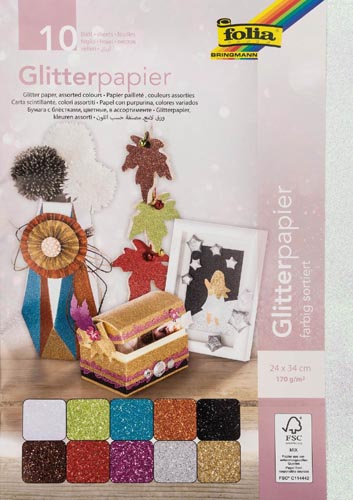 170 g/m², 10 különböző szín, egyik oldalán glitteres