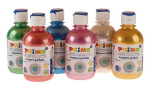Jó minőségű festék kék, sárga, zöld, fehér, rózsaszín és piros színekben. Gyöngyfény hatásúra szárad, 3 éves kortól használható. Alkalmas papír, karton, fa, üveg, fém, terracotta és műanyag felületekre. Más vízes bázisú temperákkal és vízzel is keverhető.
