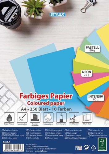 A neon árnyalatok 75 g/m², a többi 80 g/m²