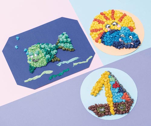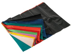15 g/m², nedvesség hatására színt enged, türkiz, fehér, sárga, rózsszín, világoszöld, piros, narancs, sötétzöld, sötétkék és fekete színekben.